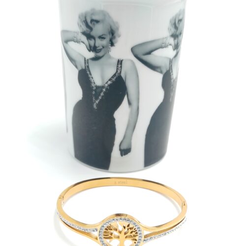 Jonc arbre de vie strass en acier inoxydable doré 🌳