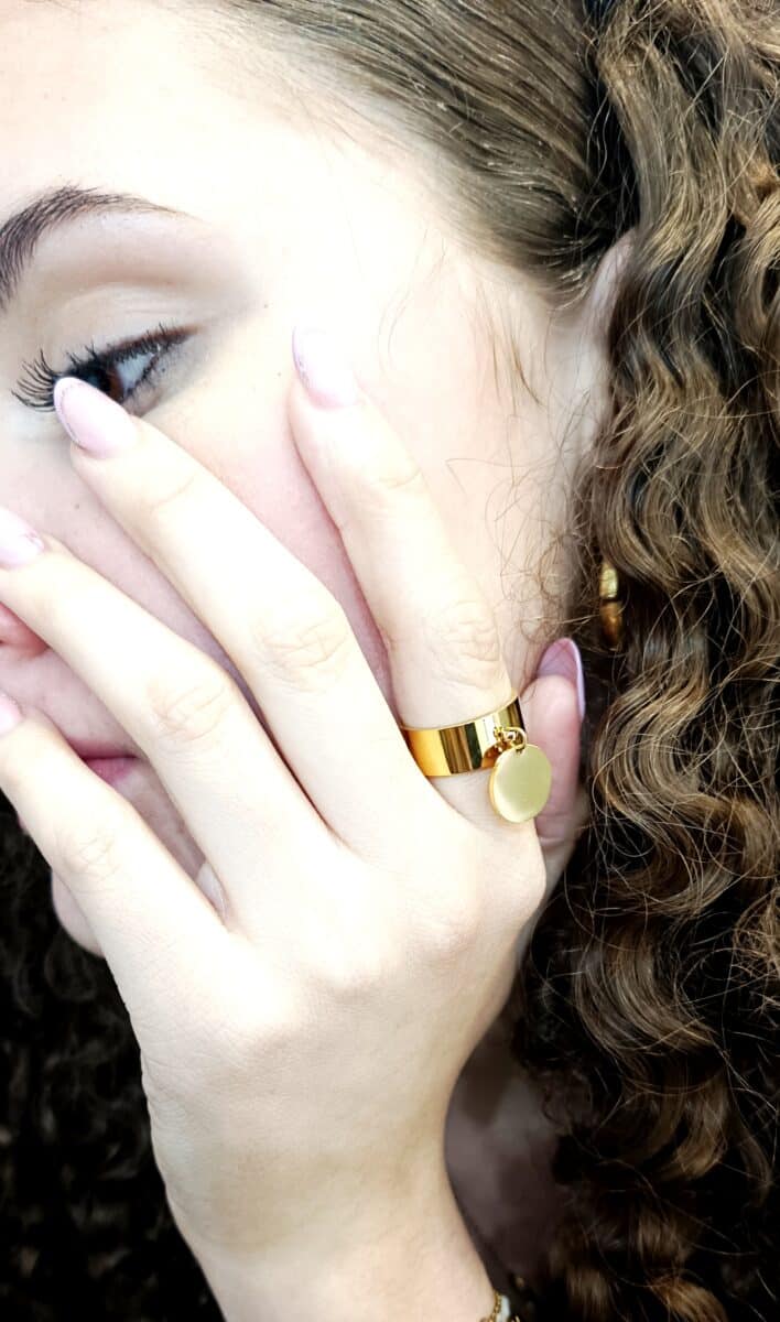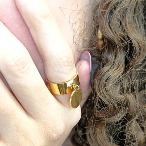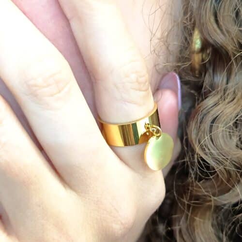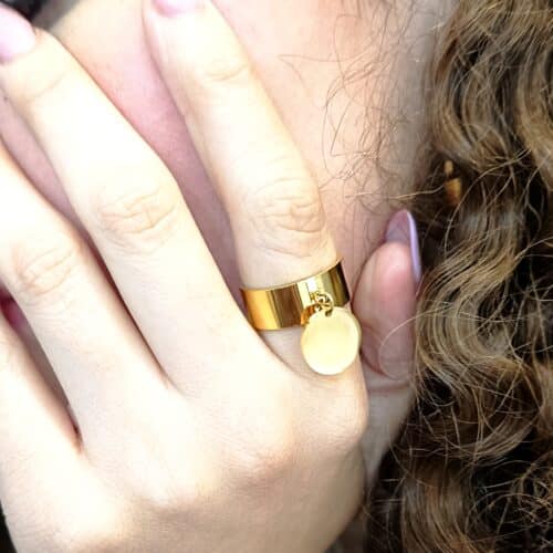 Bague breloque médaille en acier inoxydable doré