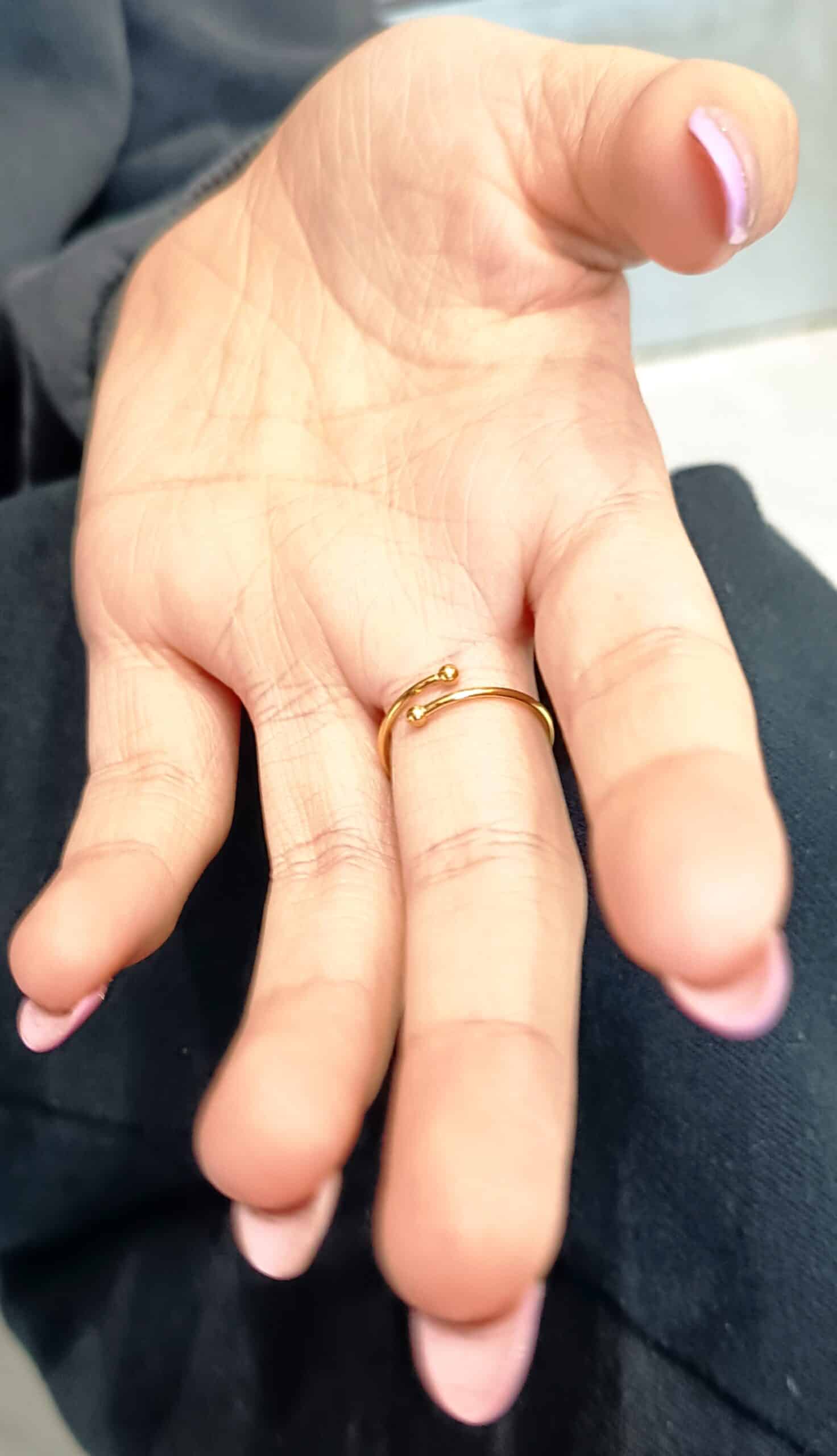 Bague ajustable pouvant convenir à la plupart des tailles de doigts.