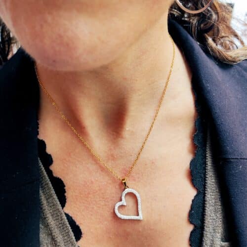 Collier en acier inoxydable doré avec pendentif coeur strassé