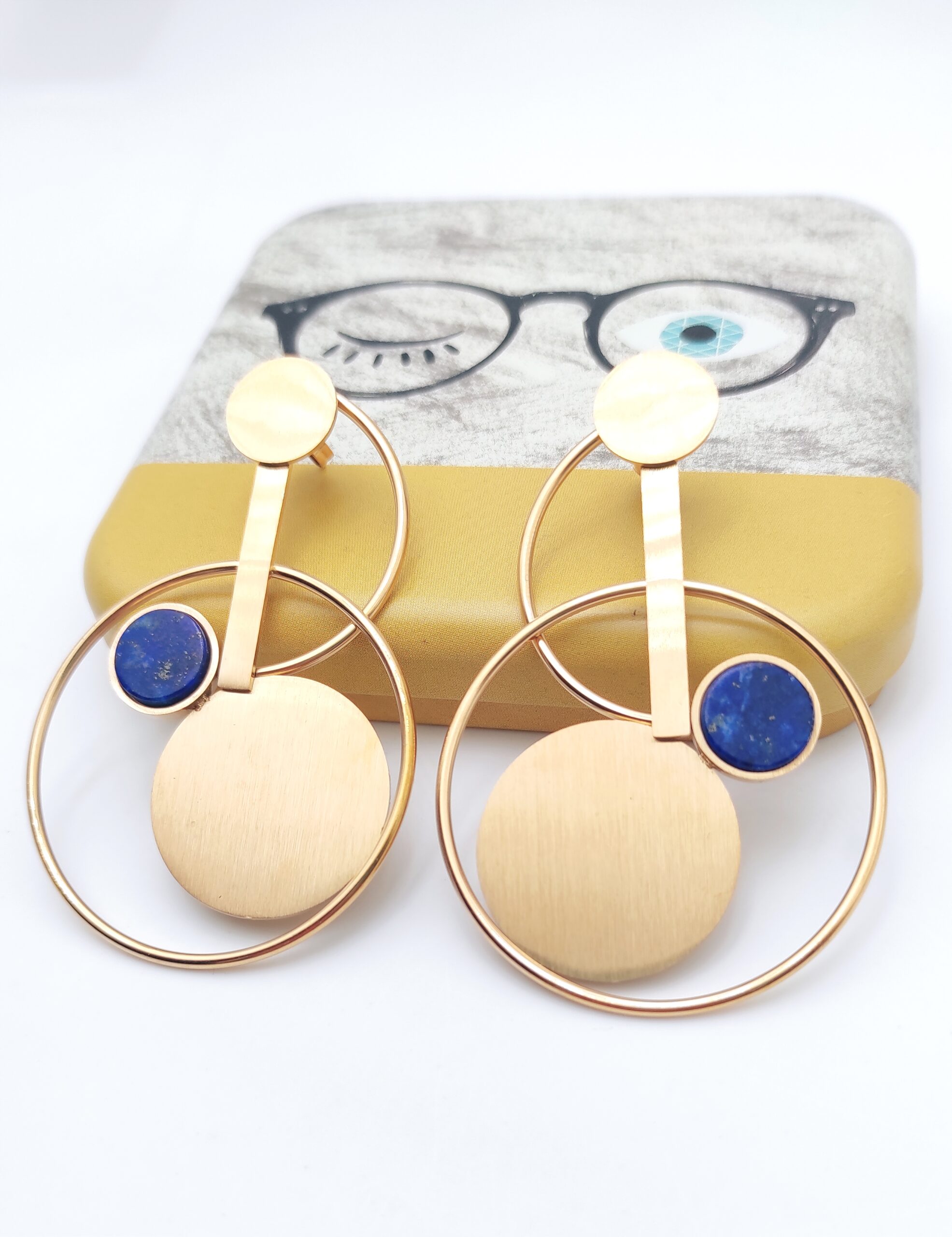 Boucles d’oreilles géométriques pierre Lapis Lazuli