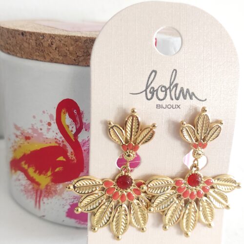 Magnifiques boucles d’oreilles en acier inoxydable doré de marque Ikita. Boucles d’oreilles à crochet constituées de perles en pierre de corail végétal teinté de couleur rouge avec une petite étoile en son centre ornée d’un petit cristal. Depuis des millénaires, la pierre agate noire est connue pour chasser les pensées négatives et surtout les personnes qui vous veulent du mal. Elle va éloigner naturellement les personnes qui sont néfastes pour votre développement personnel et pour vos projets. Les boucles d’oreilles mesurent 5,5cm de hauteur et 2,5cm de largeur. Ce bijoux très raffiné, il rehaussera vos tenues avec élégance 👌