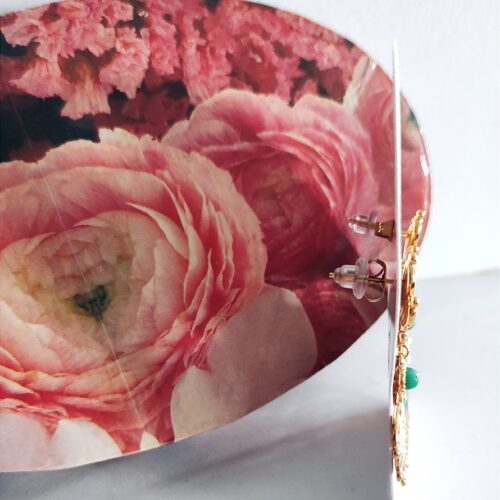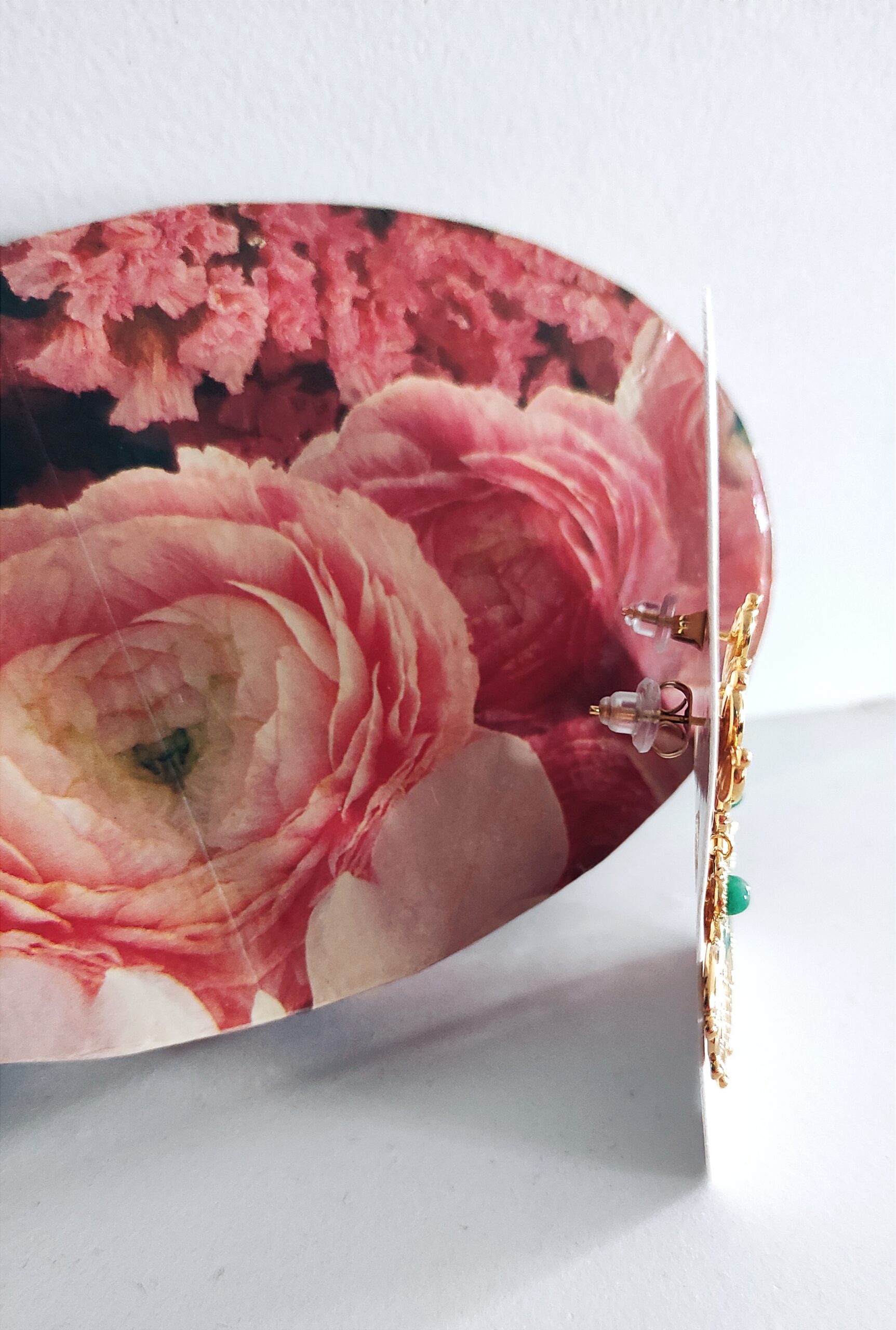 Boucles feuilles pierre jaspe vert en acier inoxydable doré