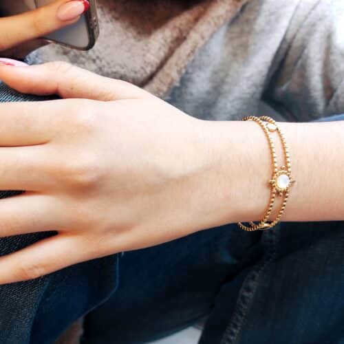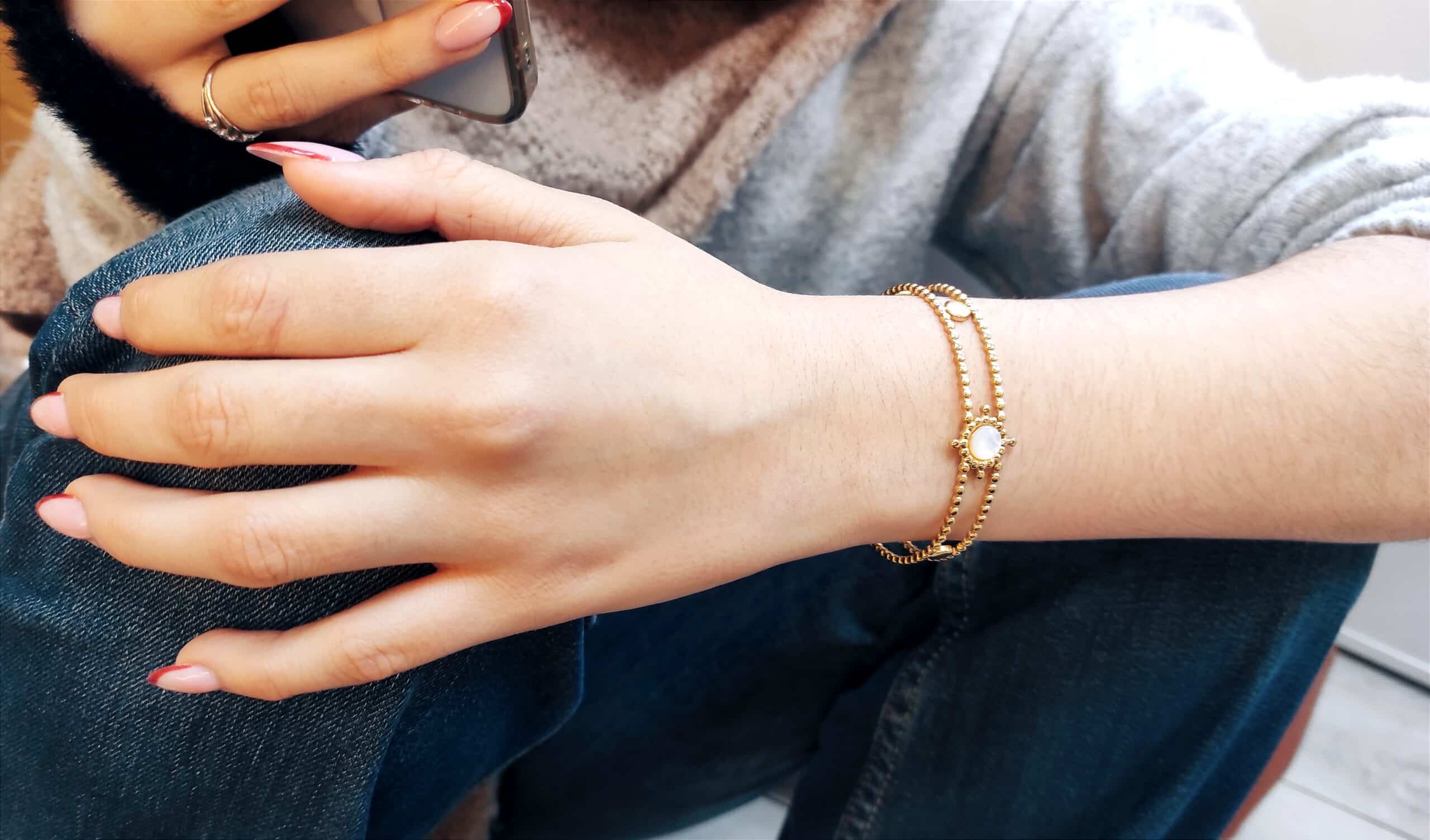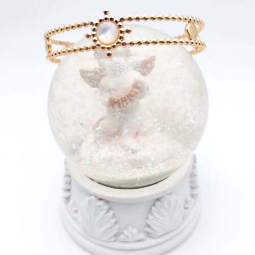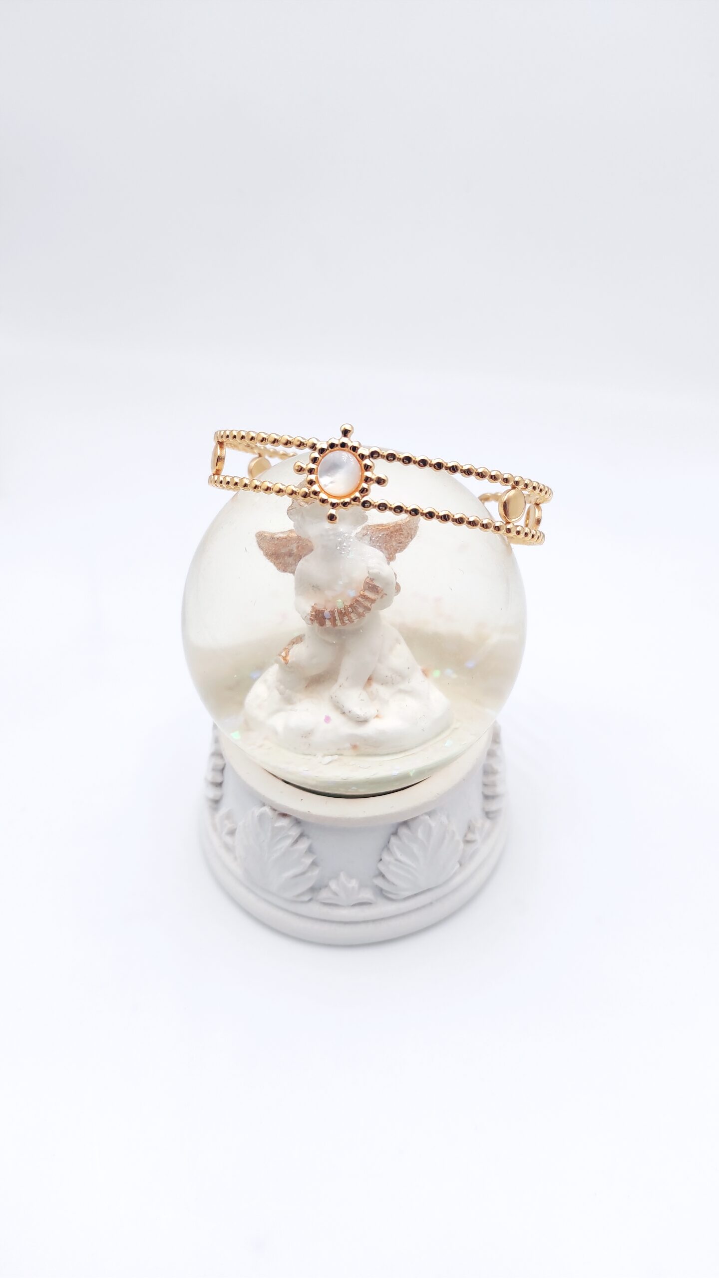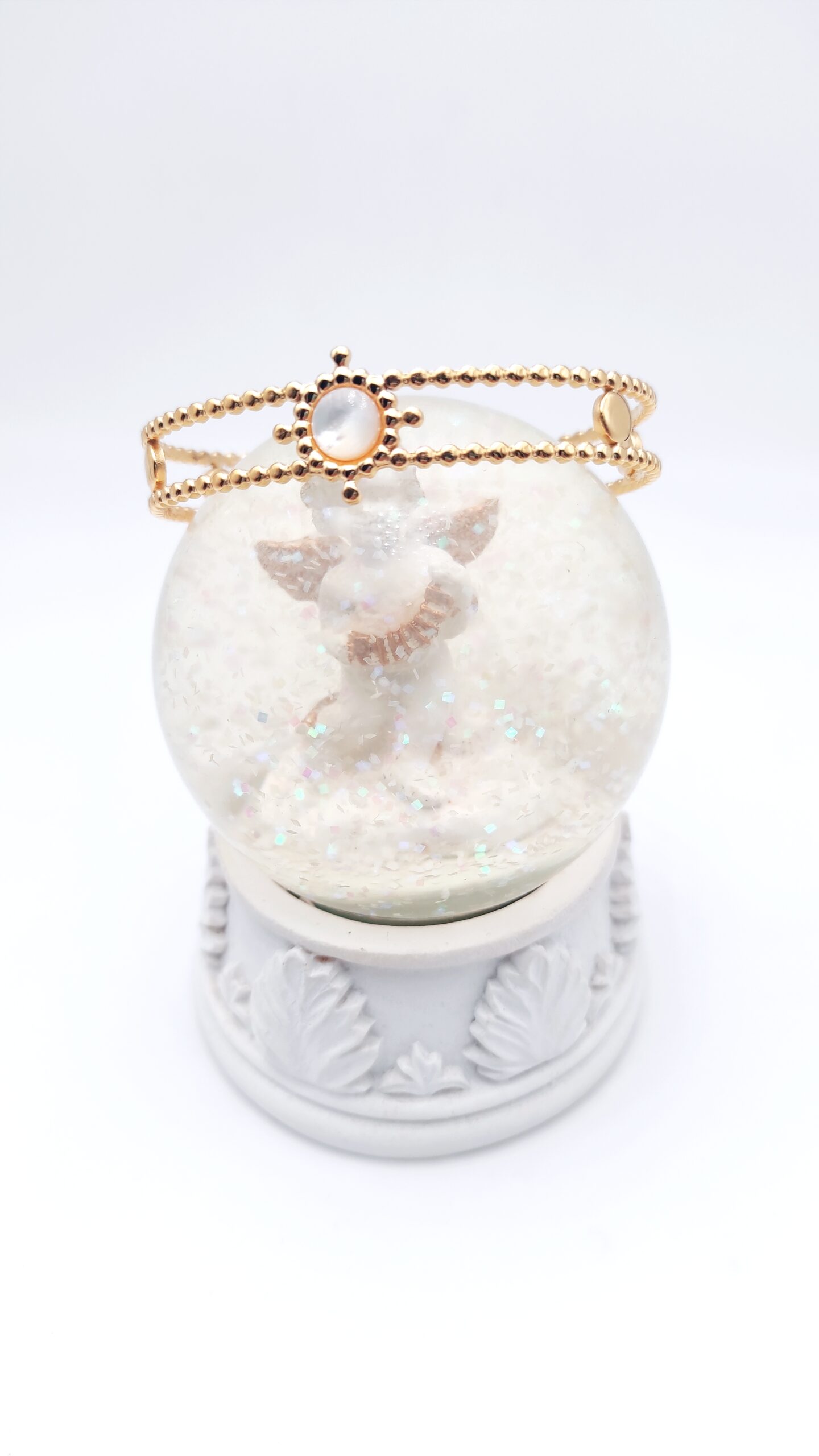 Superbe bracelet type jonc en acier inoxydable doré de marque Ikita 😍 Bijoux surmonté d’une pièce de nacre de 1cm de diamètre. Le bracelet mesure 6cm de diamètre sur 0,9cm de largeur, il peut s’ajuster en fonction de la taille du poignet. Ajouré et travaillé avec une effet de perles dorées, ce jonc est tellement lumineux et raffiné qu’il se suffit à lui-même pour vous mettre en valeur tout en élégance👌😍