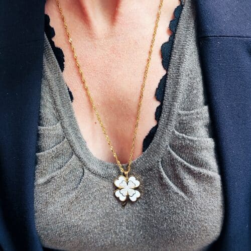 Bijoux très raffiné, très lumineux, facile à porter et pouvant s’ajuster grâce à sa rallonge plus longue que la moyenne pour pouvoir mettre le collier très ras de cou à votre goût.