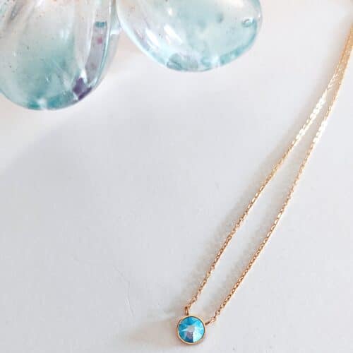Sublime collier en acier inoxydable doré de marque Bohm avec un cristal Swarovski de couleur blanc opaque mais avec tellement de reflets qu’il est juste magnifique ! 🤩