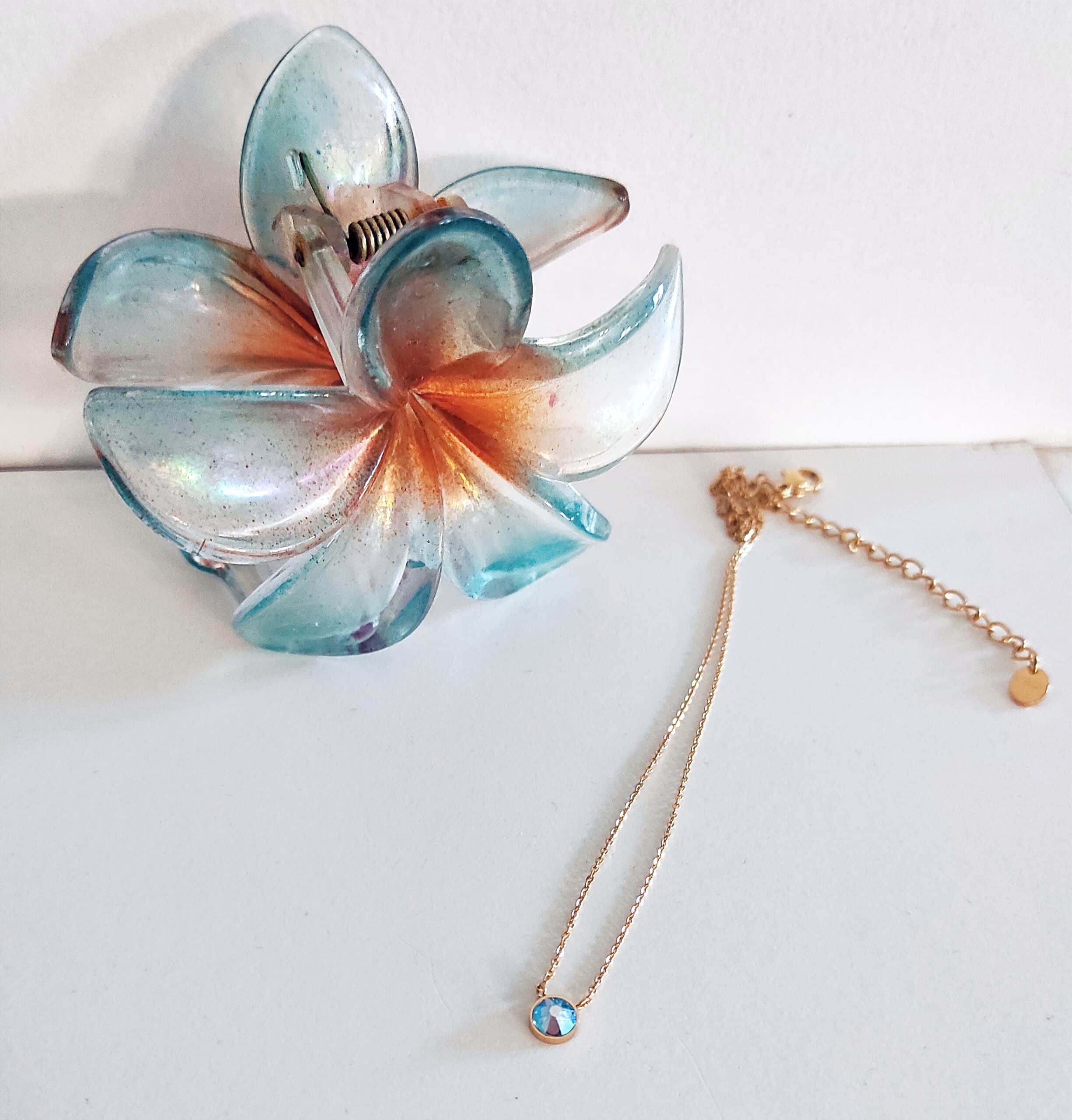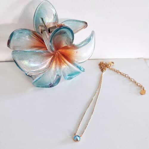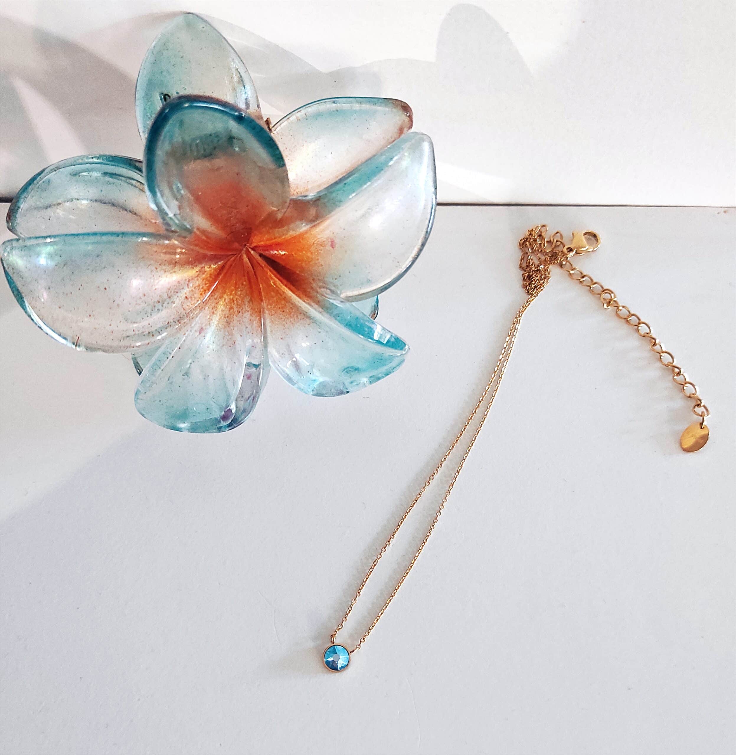 Bijoux très raffiné, très lumineux, facile à porter et pouvant s’ajuster grâce à sa rallonge plus longue que la moyenne pour pouvoir mettre le collier très ras de cou à votre goût.
