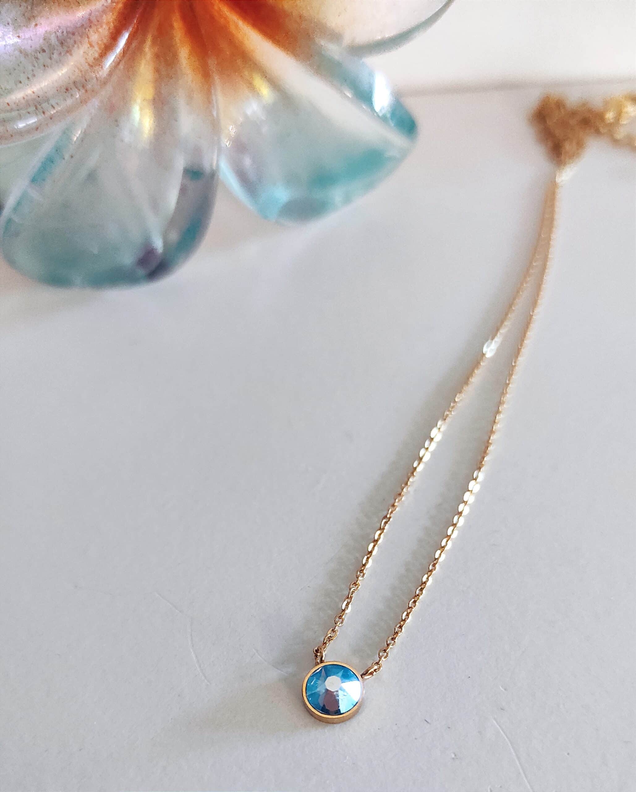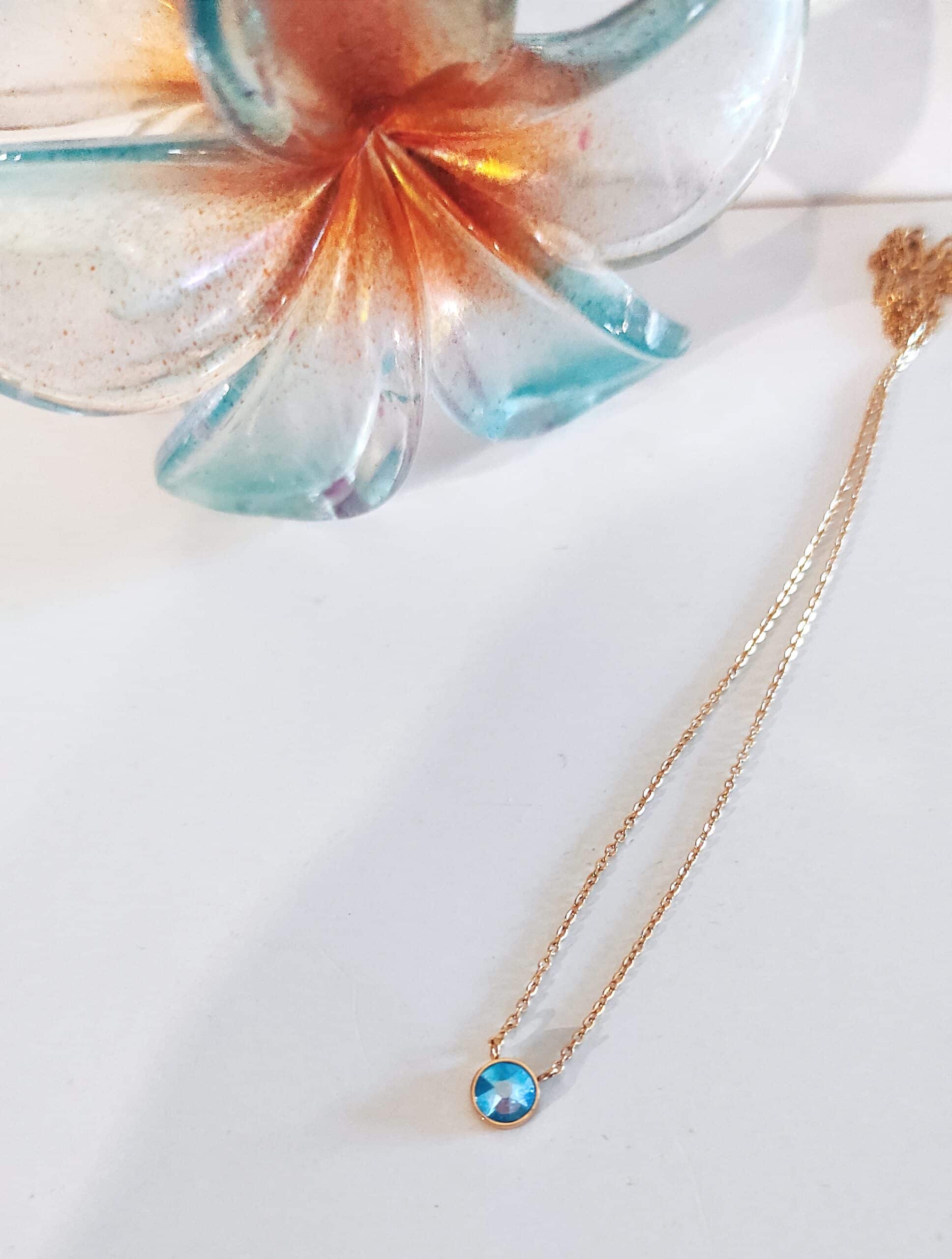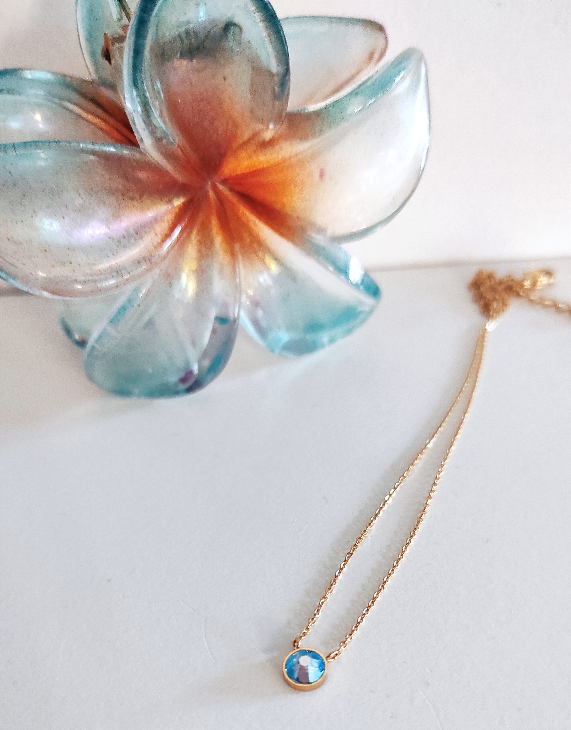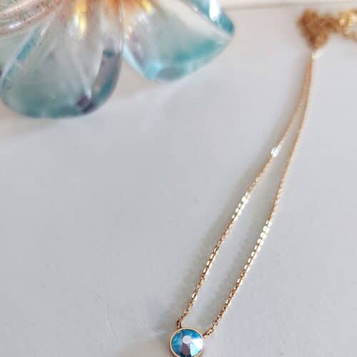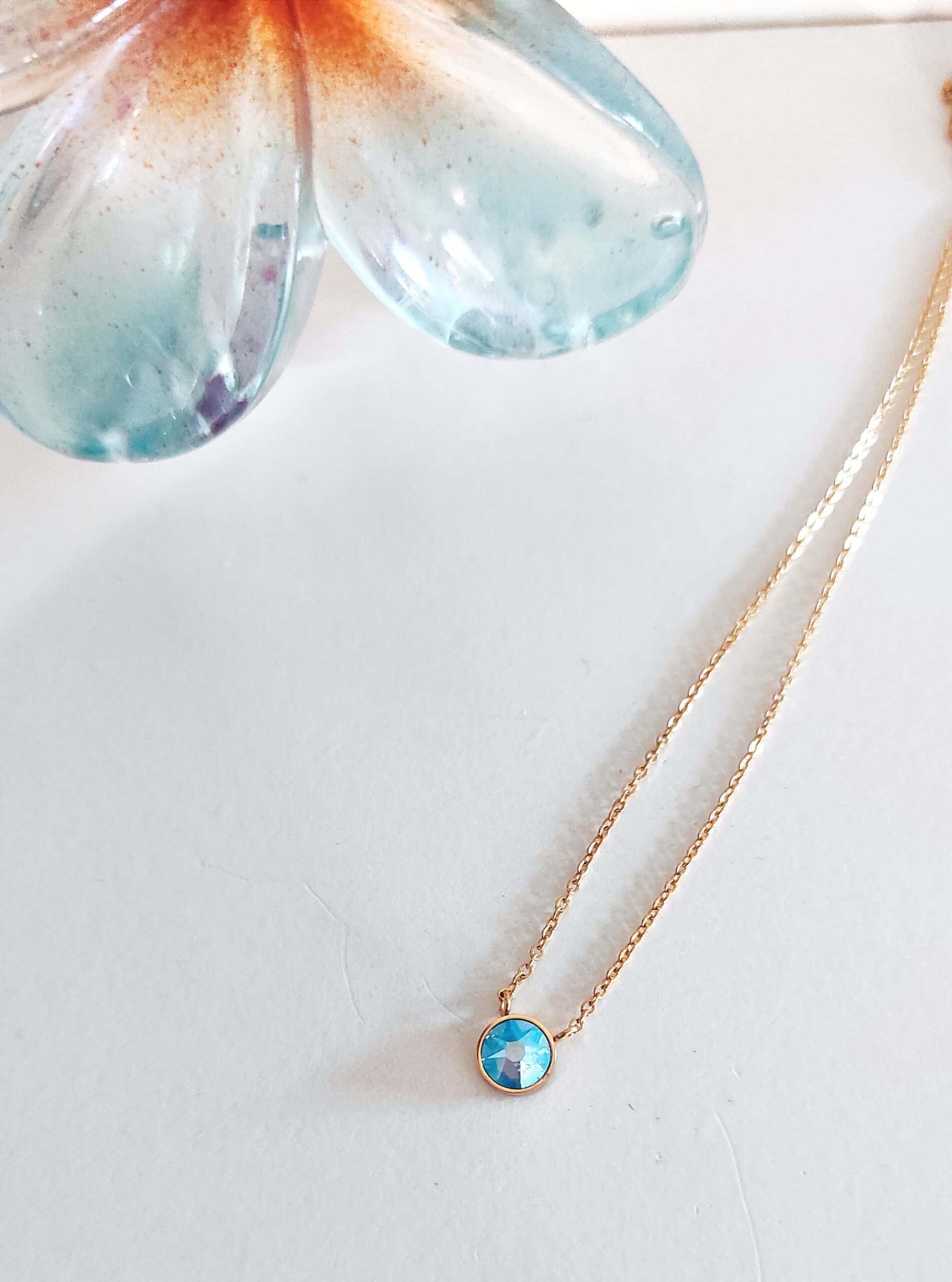 Collier cristal Swarovski bleu en acier inoxydable doré