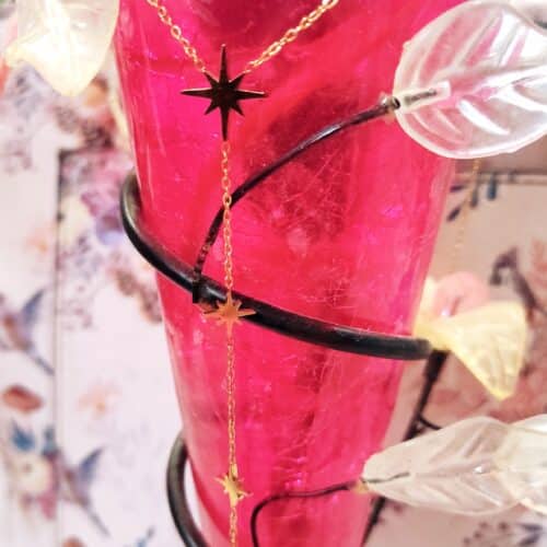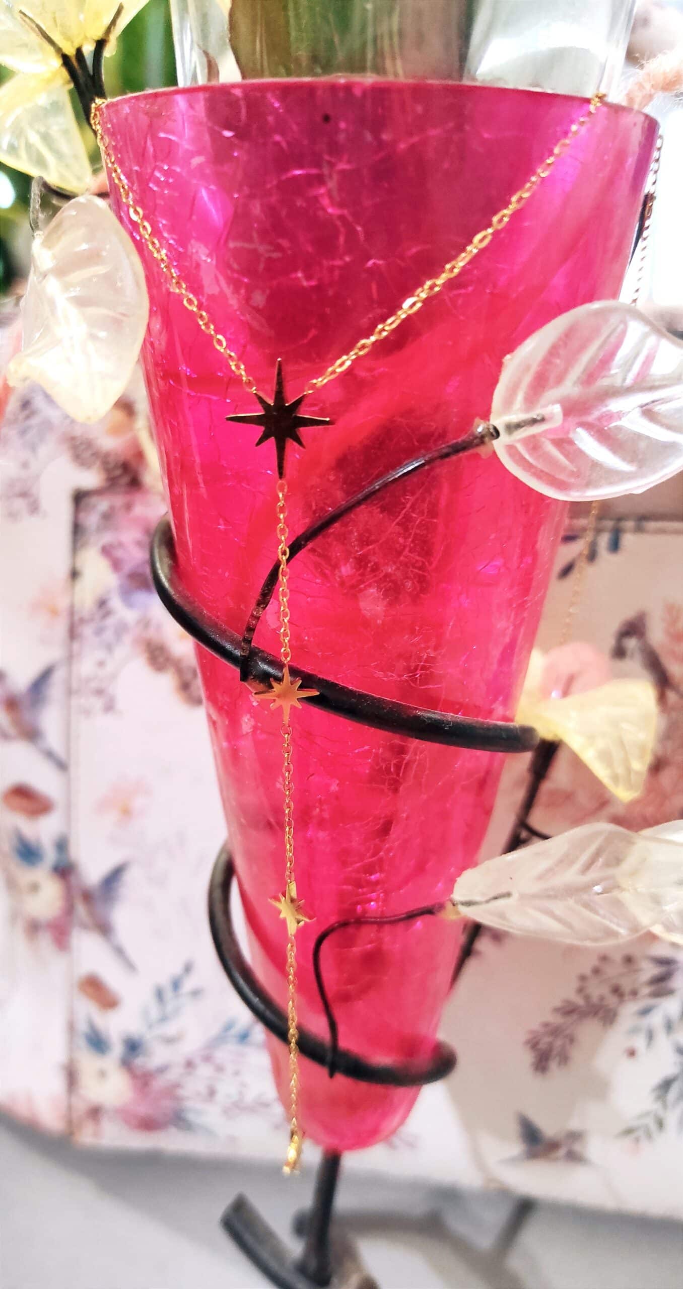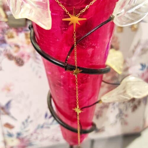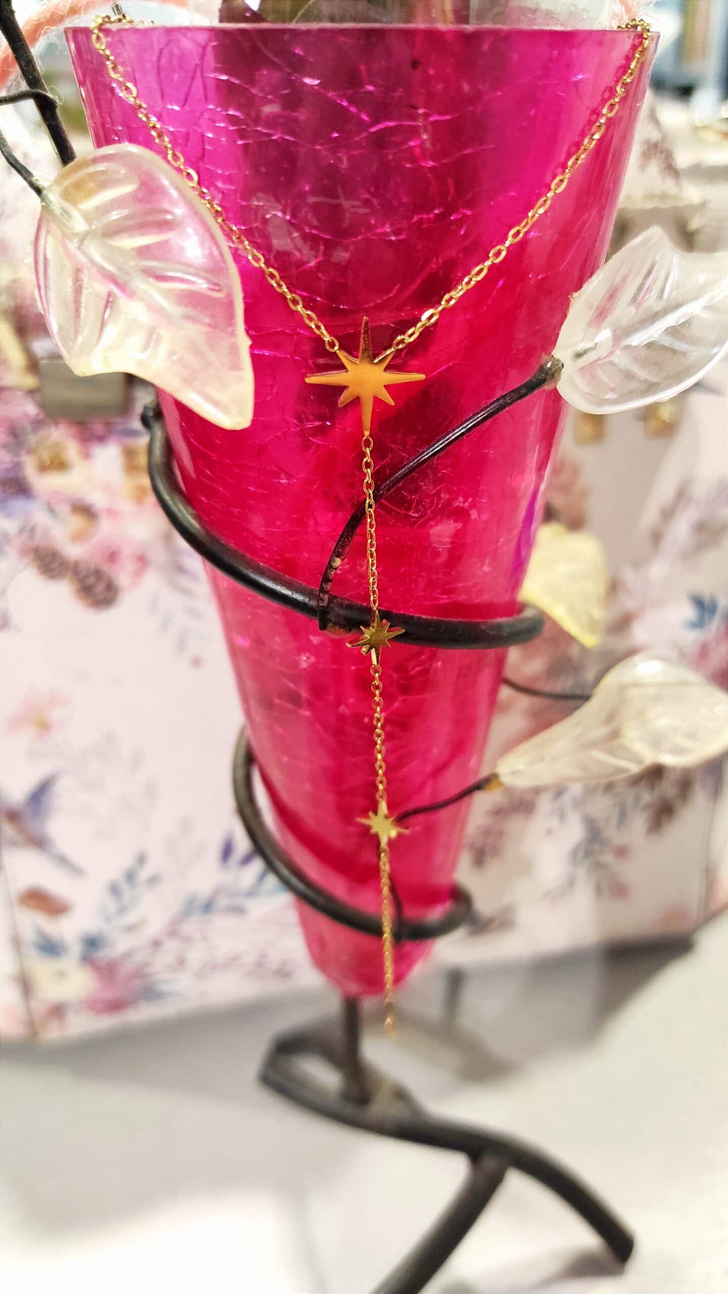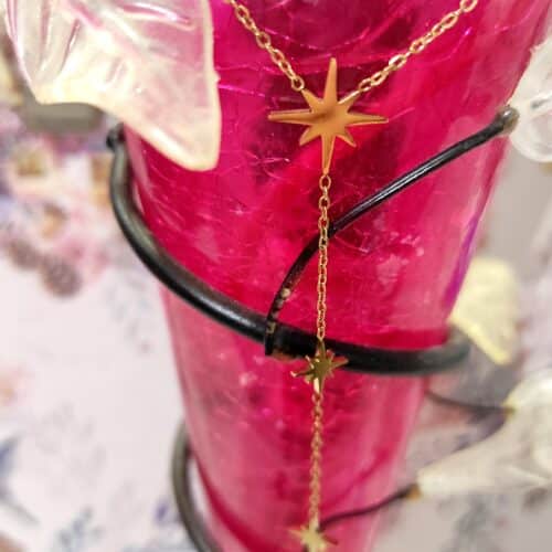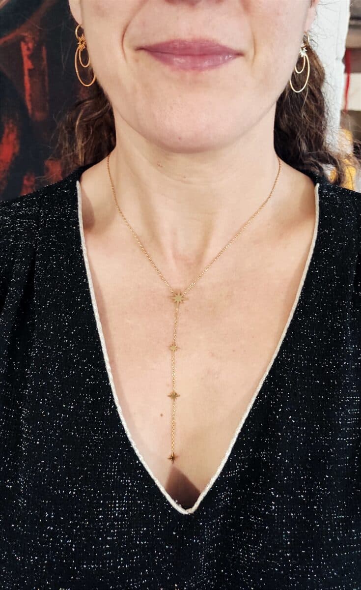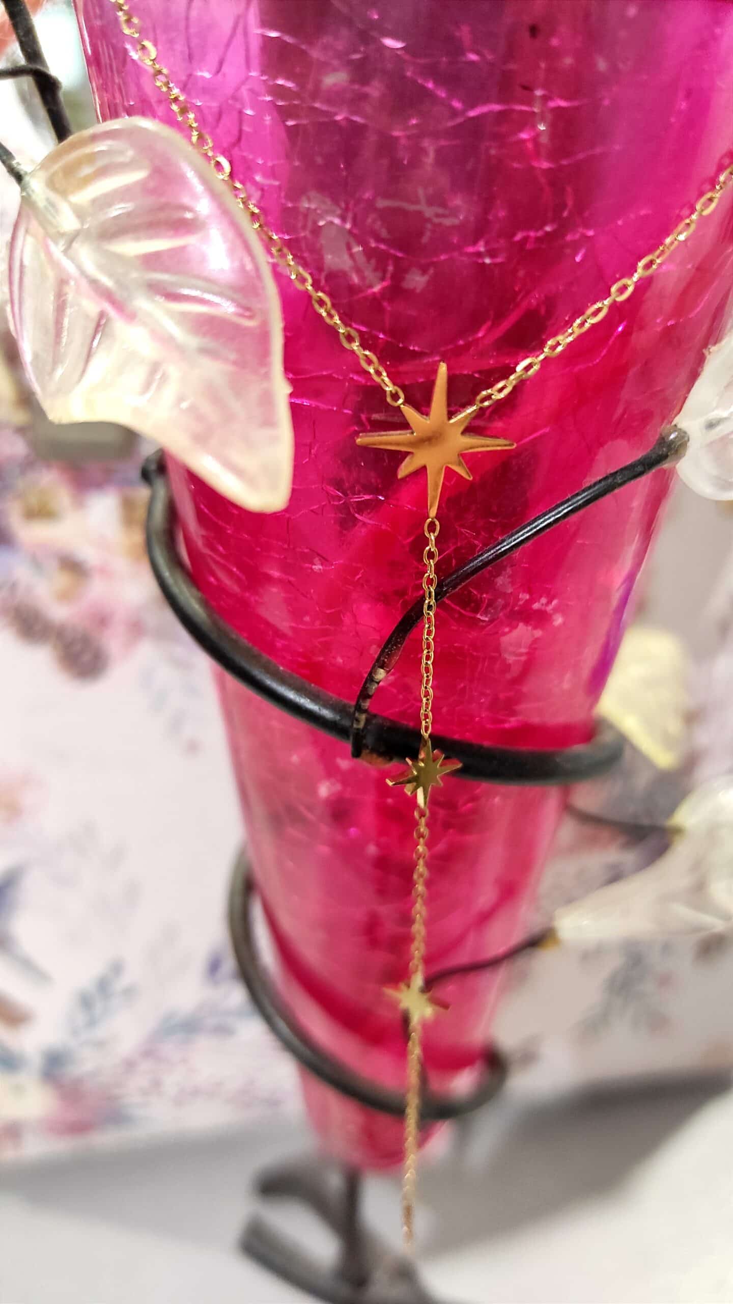 Collier en acier inoxydable doré en Y avec 4 étoiles du nord sur 10cm de longueur.