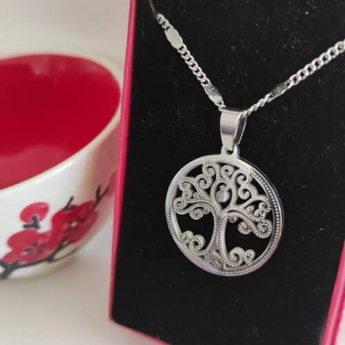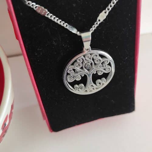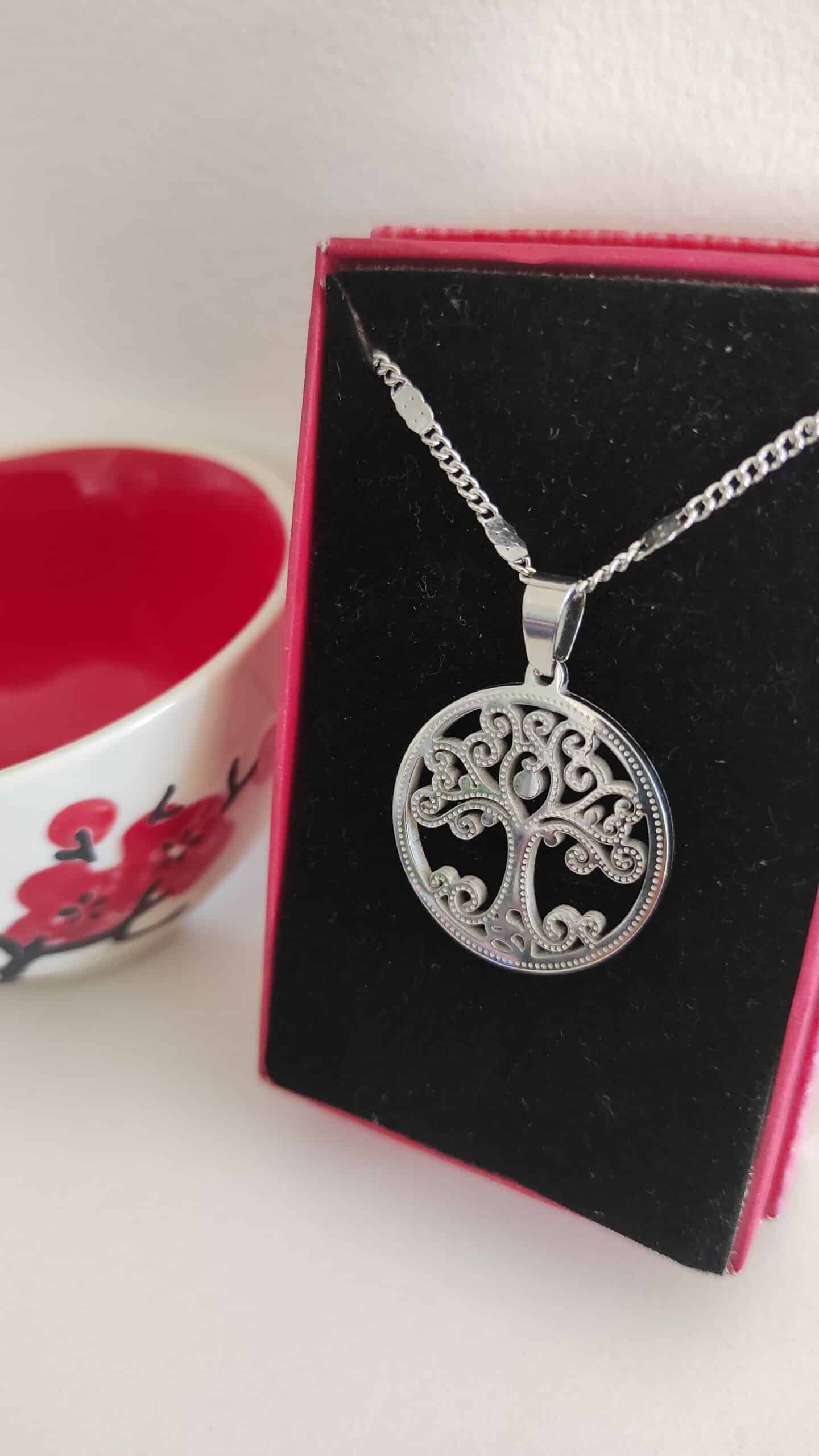 Collier en acier inoxydable avec un pendentif en arbre de vie.
