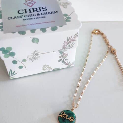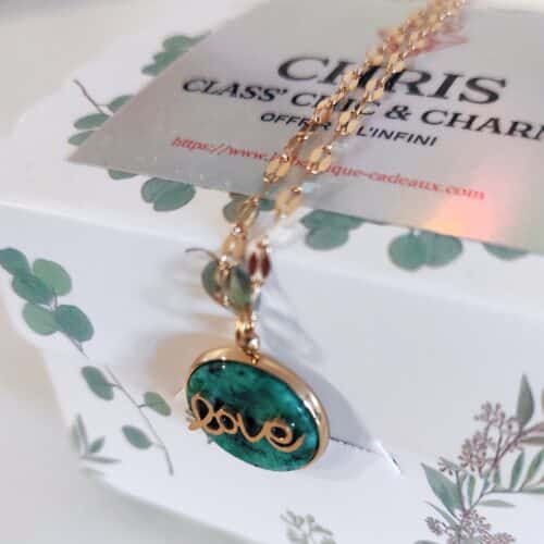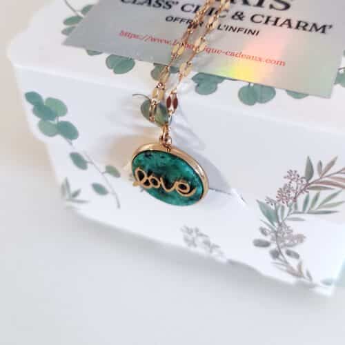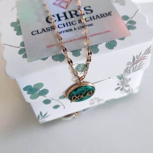 Collier pendentif Love pierre en acier inoxydable doré
