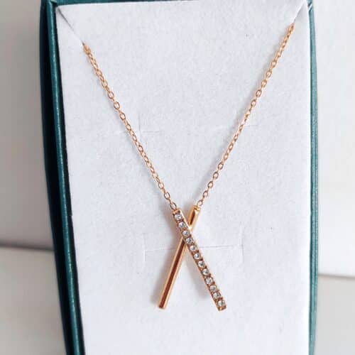 Collier pendentif croisé en acier inoxydable doré