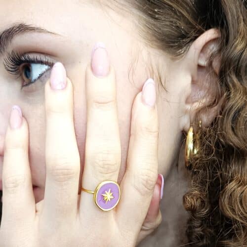 Bague émail violet en acier inoxydable doré